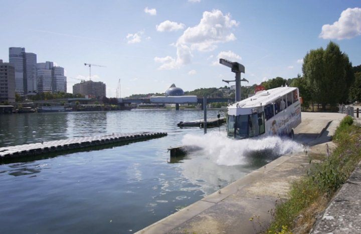 A bord de cet autocar nous découvrons et admirons les principaux sites de l’Ouest parisien en écoutant les faits marquants et quelques anecdotes croustillantes sur l’histoire de la Ville Lumière puis après, le « splash » , une entrée fracassante sur la Seine pour y naviguer 20 minutes, vers la Seine Musicale et les Jardins de St-Cloud etc ....